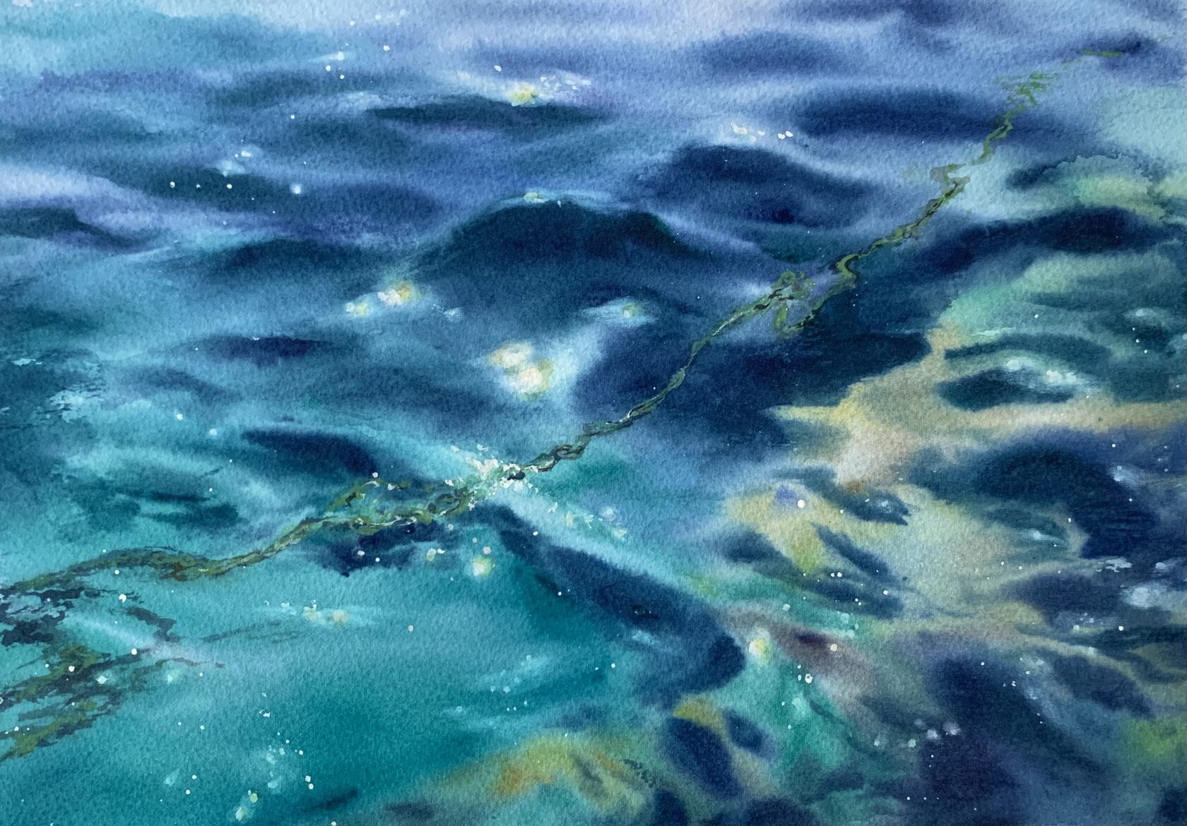 Намечаем рисунок воды и подбираем оттенки